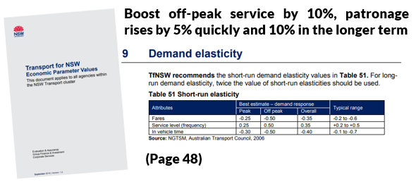 * The paper's lowlight is IV's now tedious tosh complaining about integrated fares. Page 130 refers to 'simplistic' fare structures which I'd have thought is good as people understand what they're paying. And they still don't like low income earners using the train (even if off-peak) so they'll make train travel dearer relative to bus travel. IV assumes that people can choose between bus and train for the same trip. This is usually mistaken and is not how an efficient network is configured as buses feed rather than parallel trains, with integrated fares required for this to work. Looking at how hard fare integration has been to get in other cities (with all sorts of complex ways to apportion revenue between operators and even different tiers of government), we are envied by many in having integration. We can't afford to lose what we have. IV are not even very good at economics as differential mode pricing may give rise to wasteful service planning that (for example) parallels trains with duplicative bus routes, with the buses hard to remove due to the cheaper fares they offer. Cities like Adelaide and Brisbane are examples where you can get to the CBD but few other places as buses and trains parallel rather than efficiently feed each other like they do in more developed networks such as operate in Melbourne or Perth. IV should definitely be ignored here. Cheaper fares, if thought necessary, should instead be done with off-peak discounts across all modes, which IV recommends elsewhere.